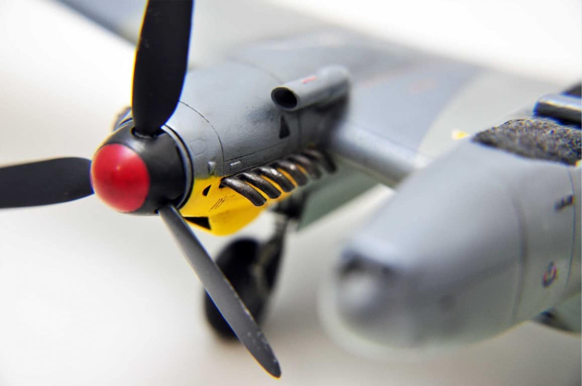 Następnie lakier połysk – kalki – znów lakier połysk i wash (wyciąganie głębi w detalach). Końcowym etapem jest tzw. „brudzing” czyli weathering czyli nanoszenie śladów eksploatacji. Tutaj zaczynamy się bawić w jak najlepsze odtworzenie konkretnej maszyny, z danego regionu działania i z konkretnej scenerii. Ta część budowy modeli jest dla mnie wciąż świętym Graalem – ale z każdym kolejnym projektem widzę postępy.