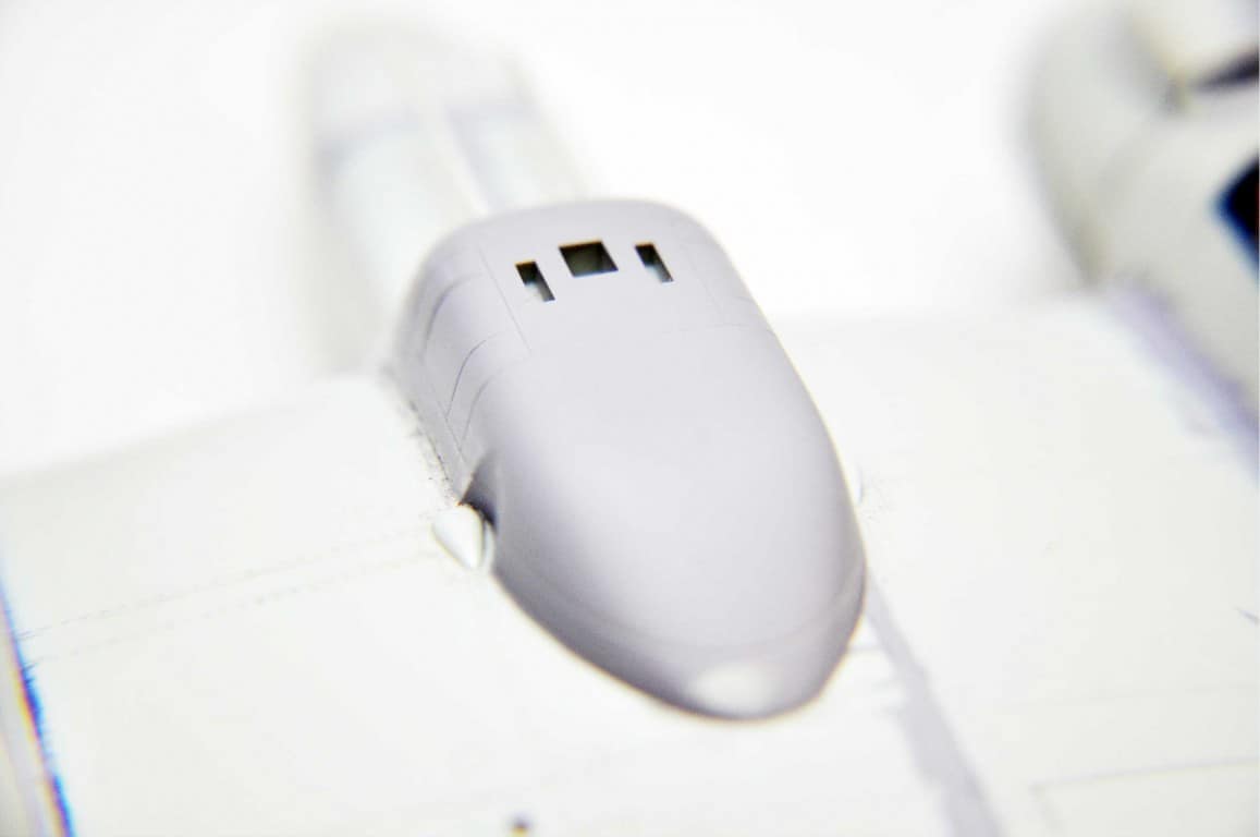 Kolejna część budowy to zamykanie kadłuba (kokpitu) i żmudne przymiarki. Jak się już uda całość poskładać i spasować ze sobą to niestety zaczyna się dalsza walka. Mam podobnie jak z remontami – szpachlowanie i szlifowanie to dla mnie zmora. Mimo, że nie przepadam ta część prac musi być solidnie wykonana. Wciąż mam z tym największe trudności. Każdy najmniejszy ubytek wyjdzie przy kładzeniu na model podkładu.